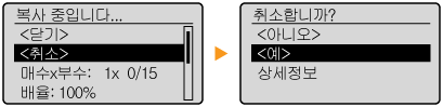 를 누른 직후에 복사를 취소하려면 <취소>를 선택하거나 조작 패널에서