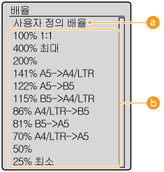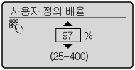 를 누릅니다. 1% 단위로 25%에서 400%까지 복사 배율을 설정할 수 있습니다.