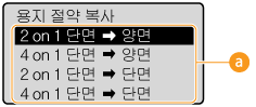 일부 용지 크기와 종류에서는 양면 <용지 절약 복사> 설정을 사용하지 못할 수도 있습니다. 용지