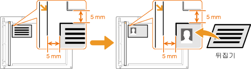 <ID 카드 복사>를 사용하여 카드 앞뒷면을 페이지의 동일한 면에 복사할 수 있습니다. 이 기능은 운전면허증이나 ID 카드를 복사할 때 유용합니다.