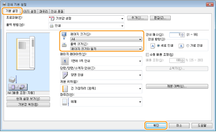 일부 응용 프로그램에서 확대/축소 설정은 프린터 드라이버보다 높은 우선 순위가 부여됩니다.
