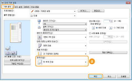 [해제]를 선택한 경우 출력물이 한 부씩 인쇄되는지 여부는 응용 프로그램의 설정에 따라 달라집니다.