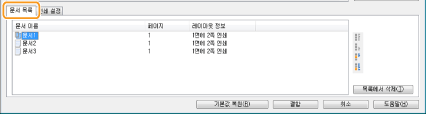 복사 매수 또는 단면/양면 인쇄와 같은 인쇄 설정을 지정하려면 [인쇄 설정] 탭을 클릭합니다. 여기에서 지정한 설정은 전체 인쇄 작업에 적용됩니다.