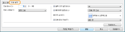 프린터 드라이버의 인쇄 설정 화면을 표시합니다. 정식 인쇄 방법을 사용할 때보다 사용 가능한 설정이 적습니다.