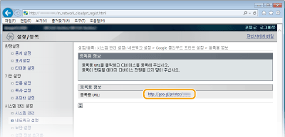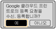 등록 절차에 대해서는 모바일 장치의 사용 설명서 또는 Google Cloud Print 웹사이트를 참조하십시오.