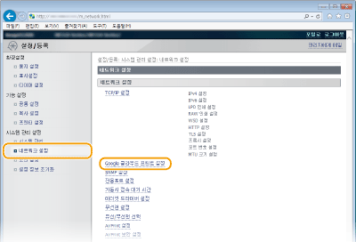 [Google 클라우드 프린트 설정]를 클릭합니다.
