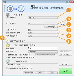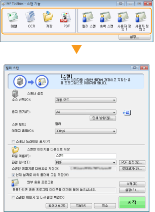 *[스캔 모드]가 [흑백] 또는 [흑백(OCR)]으로 설정된 경우 사용할 수 없습니다. 스캔 설정 구성