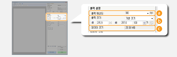 [입력 설정]과 [출력 설정]의 너비와 높이