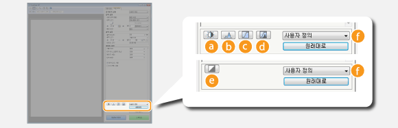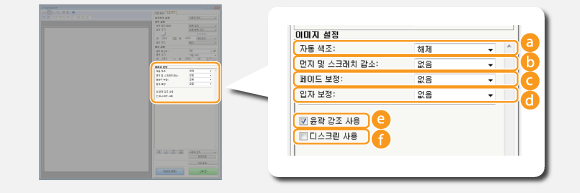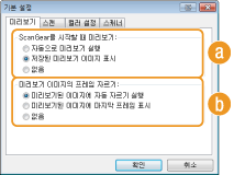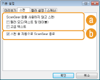 응용 프로그램을 사용하여 문서를 스캔할 때 적용되는 설정 및 ScanGear MF 작업의 설정을 구성합니다.