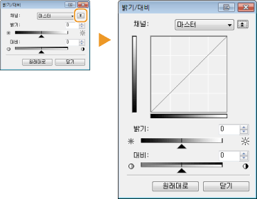 문서가 흑백 이미지로 스캔됩니다(회색의 중간 음영 없이 흑백으로만). [임계값]으로 문서나 이미지의 텍스트를 흑백으로 분류하는 임계값을 변경할 수 있습니다(밝기 및 색상 조정).