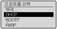 <DHCP>, <BOOTP> 또는 <RARP>를 선택하고