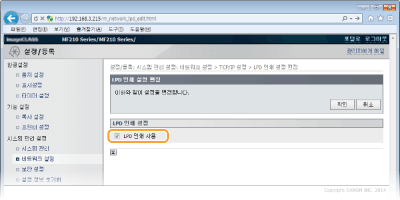 LPD를 통해 인쇄하려면 확인란을 선택합니다. LPD 인쇄를 사용하지 않을 경우 확인란 선택을 해제합니다. [RAW 인쇄 사용]
