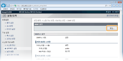 조작 패널 사용SNMPv1 설정은 <메뉴> 화면에서도 액세스할 수 있습니다. SNMP 설정