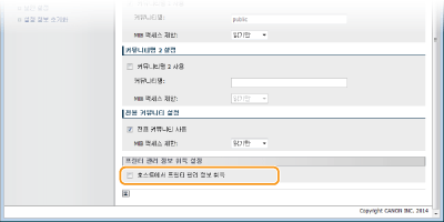 SNMPv1 비활성화프린터 드라이버를 통한 기기 정보 획득과 같은 기기의 일부 기능을 사용할 수 없게 됩니다.