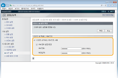 이 확인란을 선택하는 경우, 리모트 UI에 액세스하기 위해서는 PIN을 입력해야 합니다.