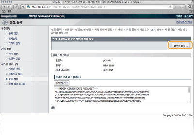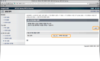 [파일 선택]을 클릭하고 인증서 서명 요구에 대한 파일을 지정한 후 [등록]을 클릭합니다.