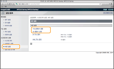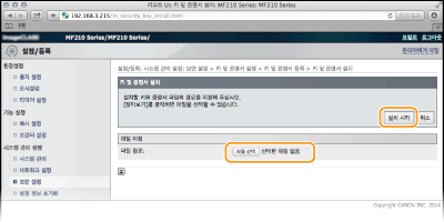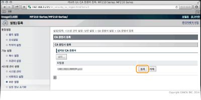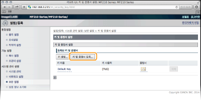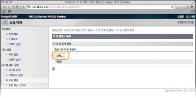 [키 및 증명서 등록] 또는 [CA 증명서 등록]을 클릭합니다.
