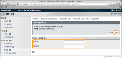 기기에서 사용할 키 쌍과 디지털 인증서는 인증 기관(CA)으로부터 획득할 수 있습니다. 리모트 UI를 사용하여 이러한 파일을 저장한 다음 등록할 수 있습니다. 키 쌍과 인증서가 기기의 요구 사항을 충족하는지 확인하십시오(