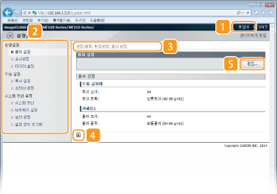 [설정/등록] 페이지를 표시합니다. 시스템 관리자 모드로 로그온하면 설정 항목을 변경하고 등록된 데이터를 저장/로드할 수 있습니다.