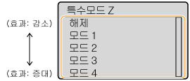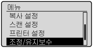 조정 및 유지 보수에 대한 모든 설정이 간단한 설명과 함께 나열됩니다. 기본 설정에는 칼표(