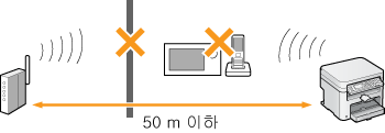기기와 무선 라우터 사이에 벽과 같은 장애물이 있습니까?