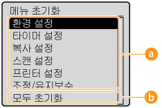 <네트워크 설정> 및 <시스템 관리 설정>을 초기화하려면