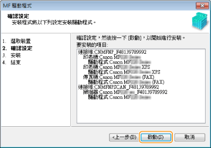 檢查設定,然後按一下 [啟動]。