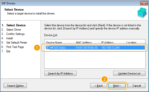 To configure the machine as the machine normally used, select the driver, and click [Next].