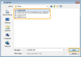 Specify the folder where the drivers are stored, select the Inf file, and click [Open].