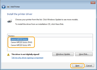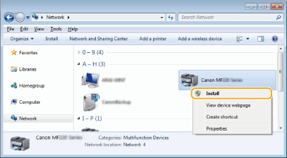 If you are using Windows Vista/7/8/Server 2008/Server 2008 R2/Server 2012/Server 2012 R2, you can print by using the WSD (Web Services on Devices) protocol. If you want to use WSD, first install the printer driver and then add a network printer.