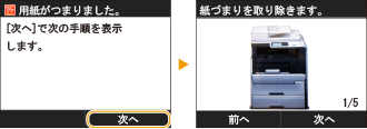 <用紙設定>給紙カセットや手差し給紙口にセットした用紙のサイズや種類を設定するときに使います。 用紙サイズと種類を設定する