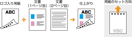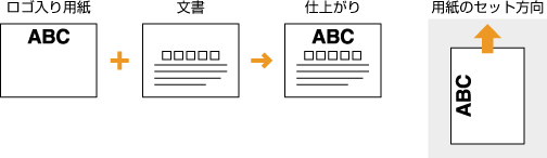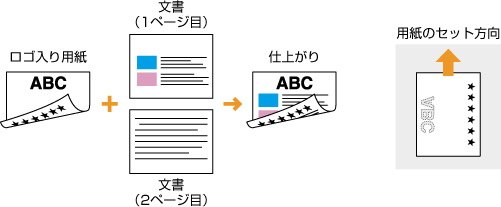ここでは、ロゴマークなどが印刷された用紙をセットするときの正しい向きについて説明しています。用紙を給紙カセットや手差し給紙口にセットするときの全体的な手順については、以下を参照してください。
