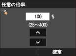 またはテンキーで倍率を入力し、<確定>をタップします。倍率は25~400%まで1%刻みで設定できます。