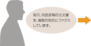 両面原稿の読み取りと宛先を<よく使う設定>に登録。必要なときに、この設定を呼び出すだけでOKです。よく使うファクス設定を登録する
