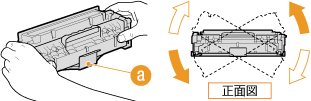 トナーカートリッジを5~6回振って内部のトナーを均一にならし、平らな場所に置く