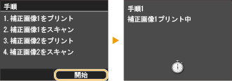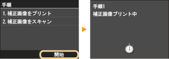 <カートリッジ寿命>と表示されている画面で<白黒プリントのみ継続>を選んでいると、この補正は実行できません。