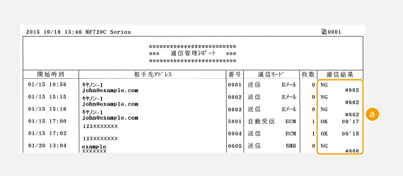 エラーコードが表示されたら)。Eメール送信の場合は、指定した宛先への通信結果ではなく、メールサーバーへの通信結果が表示されます。