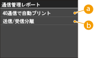 送信結果と受信結果を分けてプリントすることができます。分けてプリントする場合は<ON>、1つにまとめてプリントする場合は<OFF>を選びます。