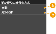 ![]() <自動>接続する無線LANルーターに合わせて、自動的にAES-CCMPまたはTKIPを設定します。