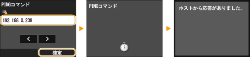 <サブネットマスク> <ゲートウェイアドレス>の順に設定します。それぞれテンキーで入力し、<確定>をタップします。