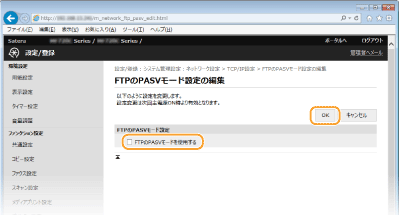 FTPのPASVモードを設定するかどうかは、お使いのネットワーク環境や送信先のFTPサーバーの設定によって異なります。詳しくは、ネットワーク管理者にお問い合わせください。