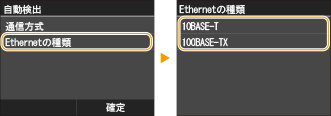 <Etherrnetの種類>をタップしたあと、<10BASE-T>または<100BASE-TX>をタップします。