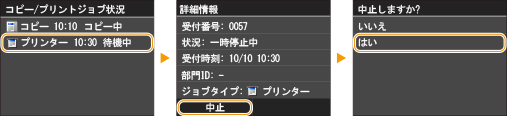 リモートUIから中止するリモートUIの[ジョブ状況]ページから印刷を中止することができます。 印刷文書の状況を確認する