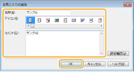 手順1の画面の[お気に入り]右側にある[編集]をクリックすると、登録した「お気に入り」の名称、アイコン、コメントを変更できます。なお、お買い上げ時にあらかじめ登録されている「お気に入り」項目は編集できません。