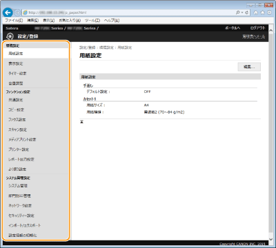 管理者モードでログインした場合にのみ変更できる項目があります。