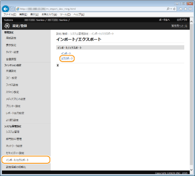 アドレス帳のデータや本機の各種設定値などを書き出して(エクスポート)、パソコンに保存できます。大切な設定データは定期的にバックアップをしておくことをおすすめします。