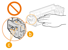 )を傷つけたり、光にさらしたりしないでください。![]() 必要なとき以外は、保護袋や本機からトナーカートリッジを取り出さないでください。