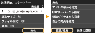一覧を表示せず手軽に宛先を外したいとき手順1で<確認/編集>を選ぶ前に