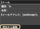 / を押すと、宛先が順次表示されますので を押すと、そのとき表示されている相手先を宛先から外すことができます。 |