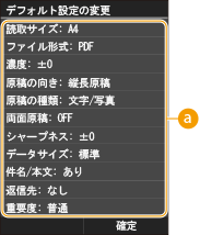 を押したときなどに表示される設定値を初期値といいます。この初期値を、ひんぱんに使用する操作内容に合わせて変更しておけば、スキャンするたびに同じ設定をする手間が省けます。